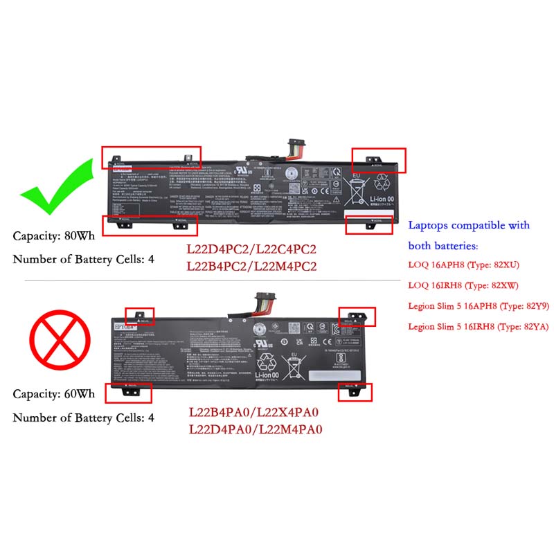 … - Some of the above models are suitable for two different batteries (L22D4PC2 80Wh?&?L22M4PA0 60Wh)